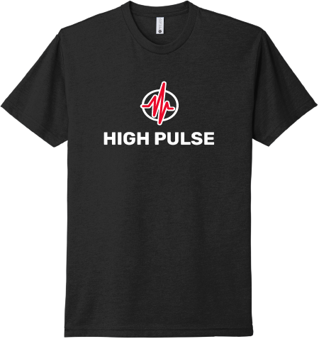 Show your High Pulse passion with the black short sleeve High Pulse logo shirt. This shirt is great for everyday casual wear or to wear during your High Pulse activity. Sizes are unisex.