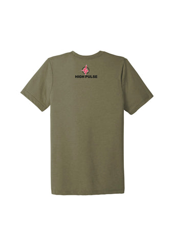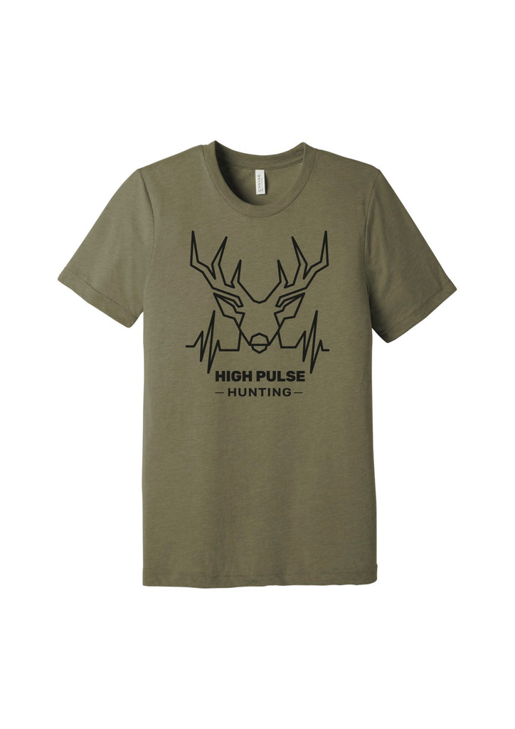 Show your Hunting passion year round with a High Pulse Hunting short sleeve shirt.  This tri-blend, lightweight, breathable shirt is perfect for wearing in and out of the field.  Sizes are unisex.