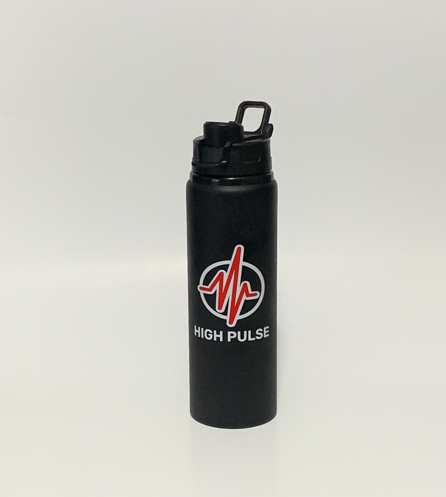 Put your favorite refreshment in this High Pulse 28 ounce water bottle. This light weight water bottle includes a screw on lid with a carrying handle so you can take it on a hike or to the ball game. **Only Use with cold liquids**